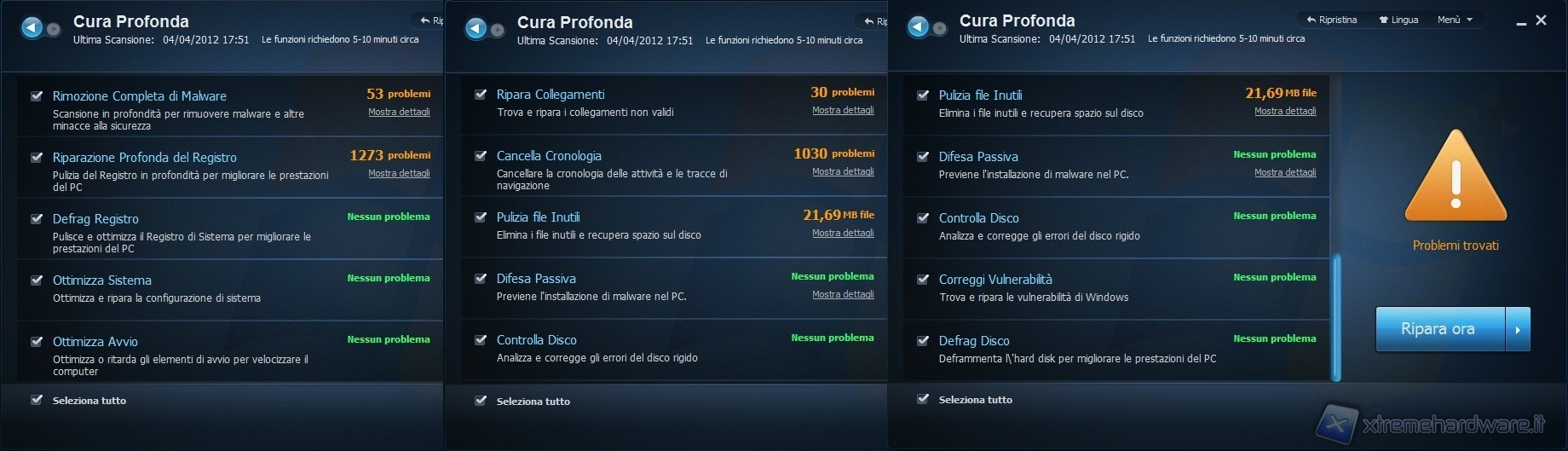 Avviamo nuovamente l’esecuzione della scansione, alla ricerca di problemi da risolvere e file inutili da eliminare.
