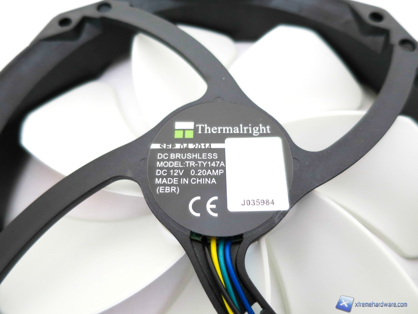 Come visto con il Thermalright True Spirit 140 BW Rev.A, viene fornita in dotazione una classica ventola da 140mm modello Thermalright TR-TY147, il modello forse più utilizzato nella gamma di dissipatori a torre di Thermalright. Tale ventola come abbiamo già visto è molto funzionale e valida considerando i suoi RPM massimi che si attestano a 1300 e la rumorosità generata di 21dBA al massimo dei giri. All’atto pratico sarà davvero silenziosa. Infine, tale modello riesce a garantire un valore di 73,6CFM al massimo dei giri grazie anche al suo buon diametro. La ventola sul piano estetico adotta il classico schema nero e bianco rispettivamente per frame e pale. Per altri modelli viene utilizzata anche la colorazione rossa/arancione (ad esempio con il Silver Arrow SB-E Extreme) o il classico colore beige/grigio (Silver Arrow SB-E e IB-E o Archon SB-E X2 e IB-E X2). Non dimentichiamo che le 7 pale Silent Torpedo che la compongono non hanno la classica forma netta ma hanno un design aerodinamico il quale riduce la frizione consentendo un flusso uniforme e stabile. La ventola è dotata anche della tecnologia EHFB (Enhanced Hyper-Flow Bearing) che assicura RPM stabili e una vita prolungata della ventola stessa.
