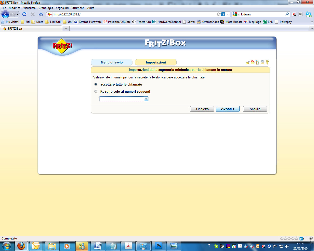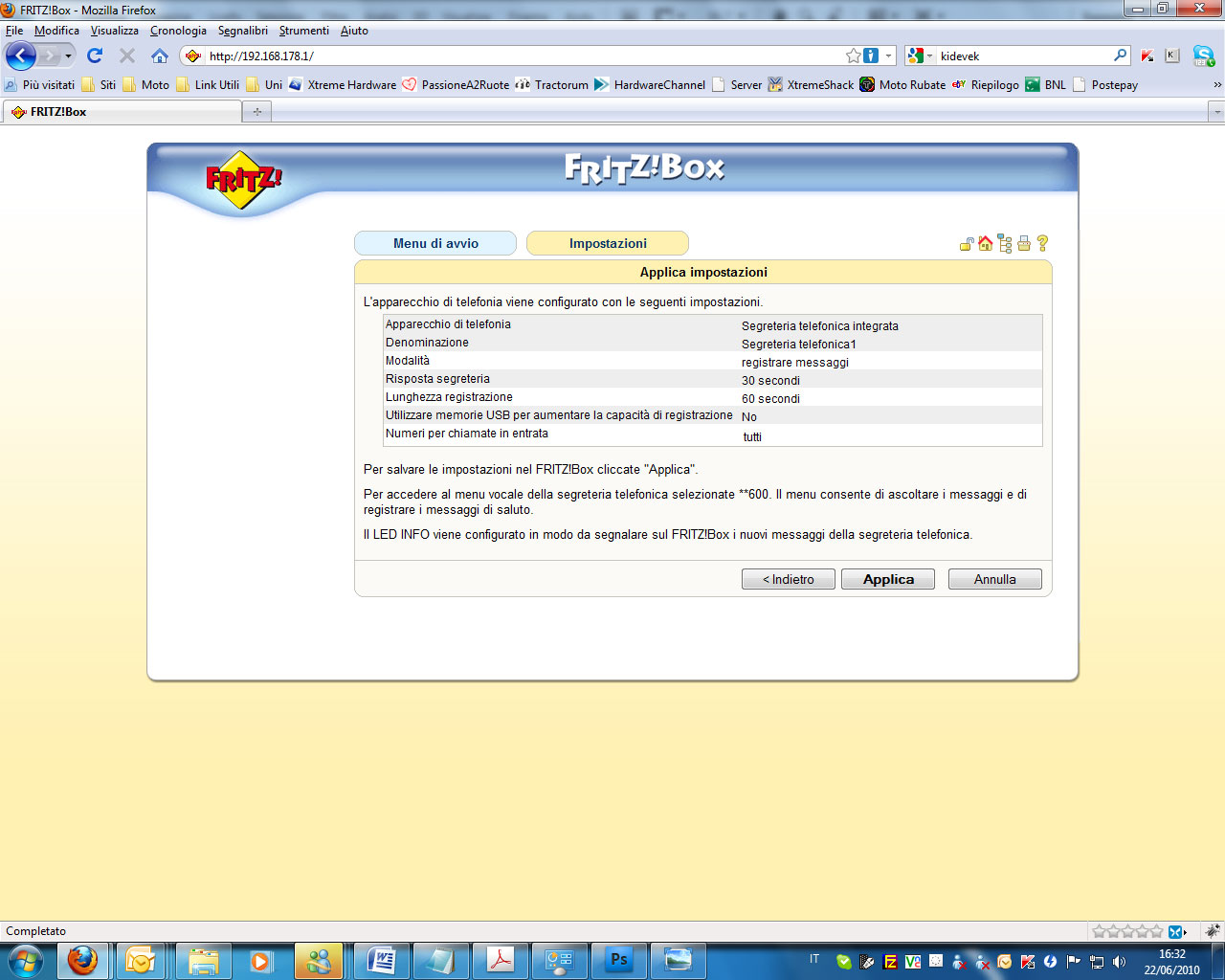 e la Segreteria Telefonica (purtroppo la voce base è in inglese)