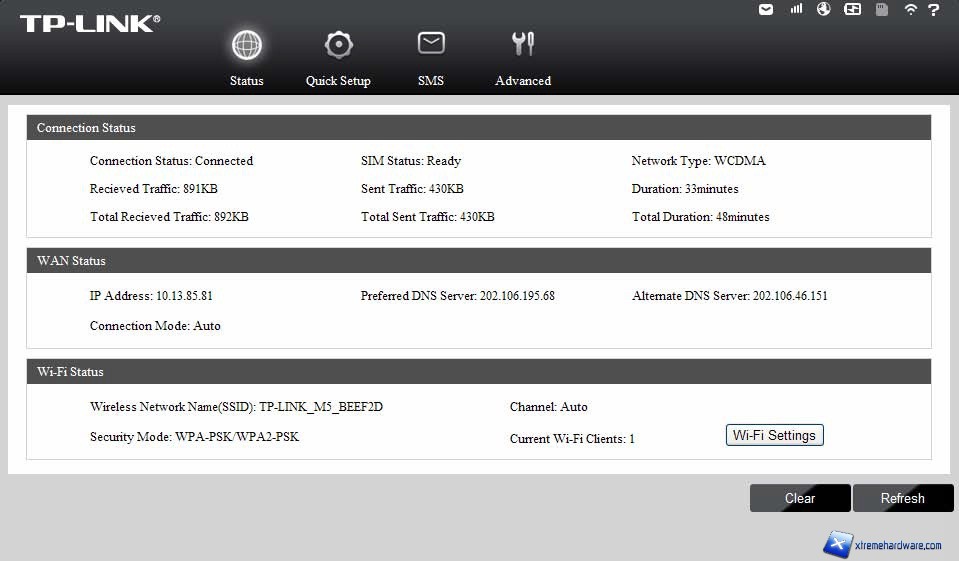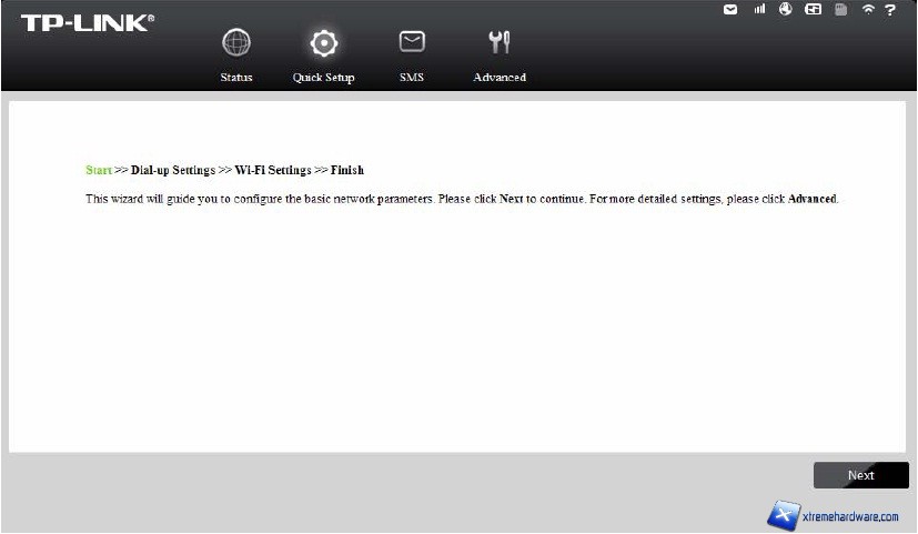 Accedendo alla console web di gestione sono visibili i menu Connection (Connessione), Quick Setup, SMS ed Advanced (Avanzate).