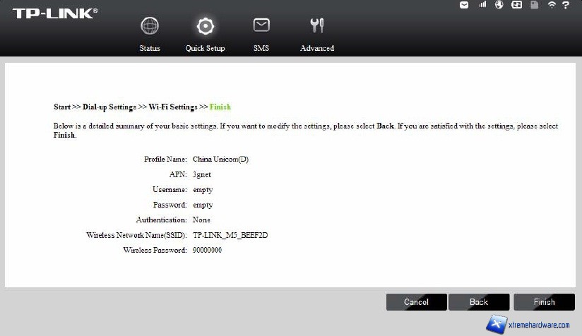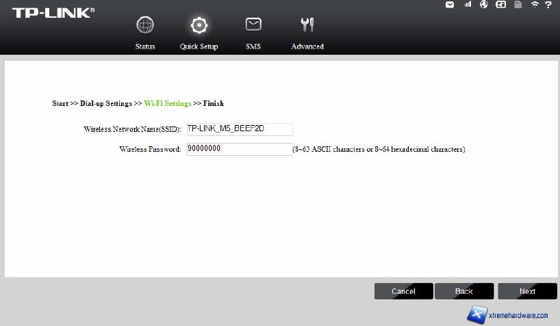 Nella schermata Wi-Fi Settings (Wi-Fi) è possibile modificare il nome e password della rete wireless generata. Fare clic su Next (Avanti) per proseguire.